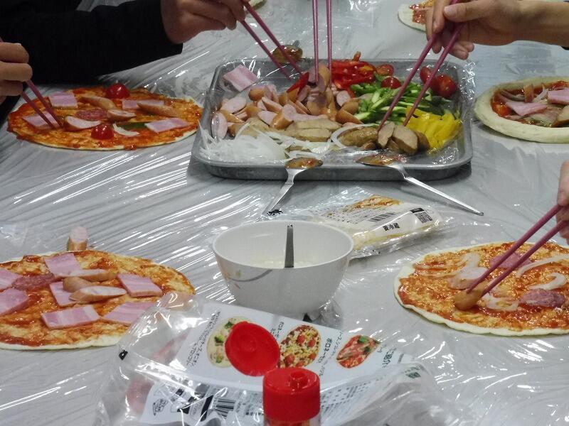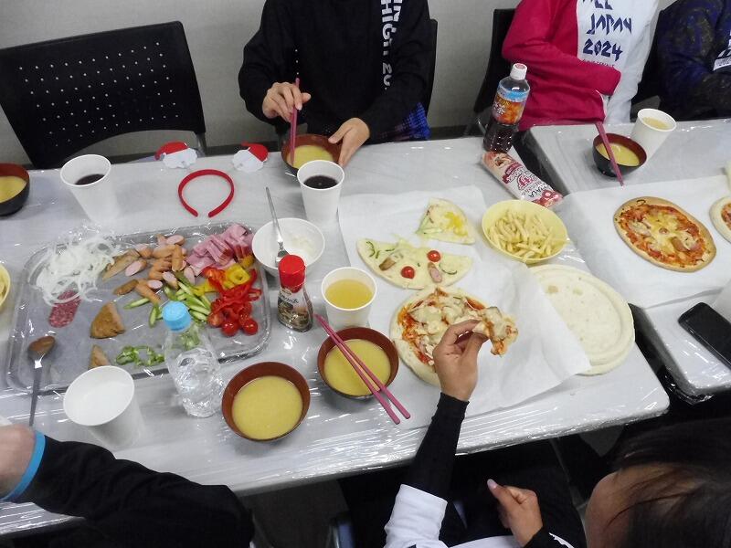 12月12日(木)、クリスマス会を開催しました。みんなでチーズ、ベーコンなど様々な具材を思い思いにトッピングしてピザを作り食べました。また、プレゼント交換やビンゴゲーム大会で盛り上がりました。食後はケーキも食べ寮生の親睦を図りました。一年間お疲れ様でした。来年も頑張りましょう!
