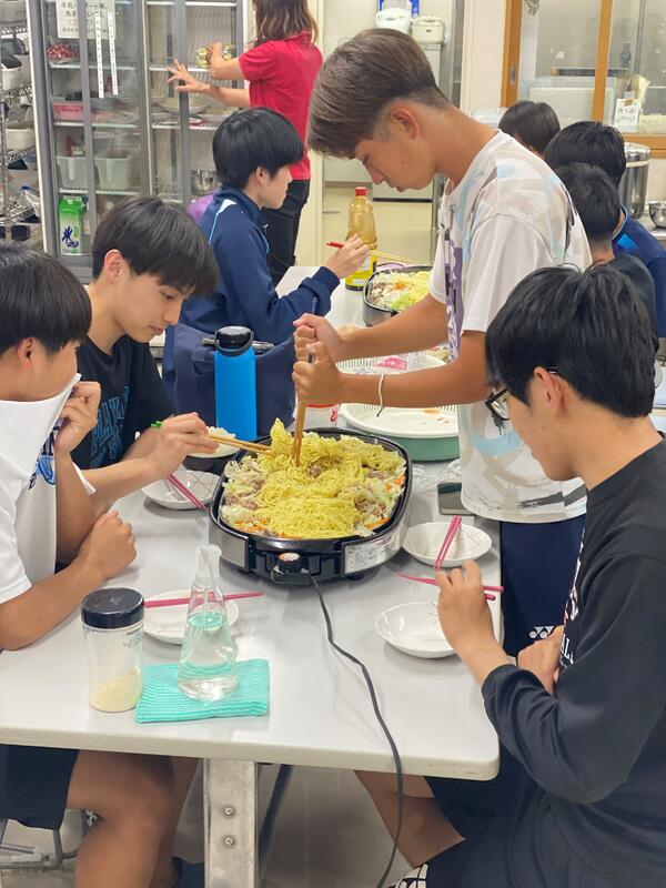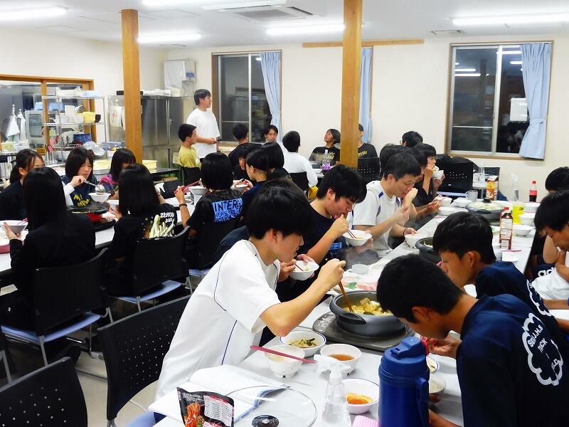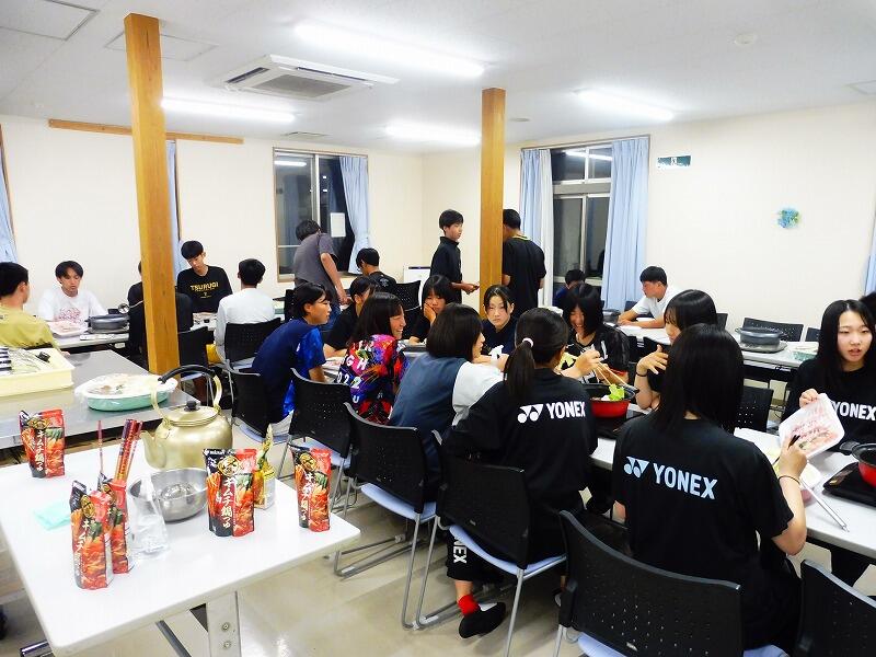 避難訓練後は、寮に帰り寮生集会と恒例の食事会を行いました。今回は、寮生からの要望が強かった「焼き肉」パーティで親睦を深めました。
