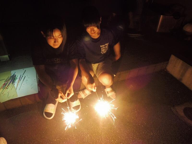 7月16日(水)、美馬東部寮の納涼祭が行われました。各グループ別れ、唐揚げ、たこ焼き煎餅、クレープ、ゲソ天、フルーツ飴、冷麺、冷やしキュウリ、フランクフルトをみんなで作り食べました。日没後には、恒例の花火大会を行いました。寮生が協力しながら楽しい時間を過ごしました。