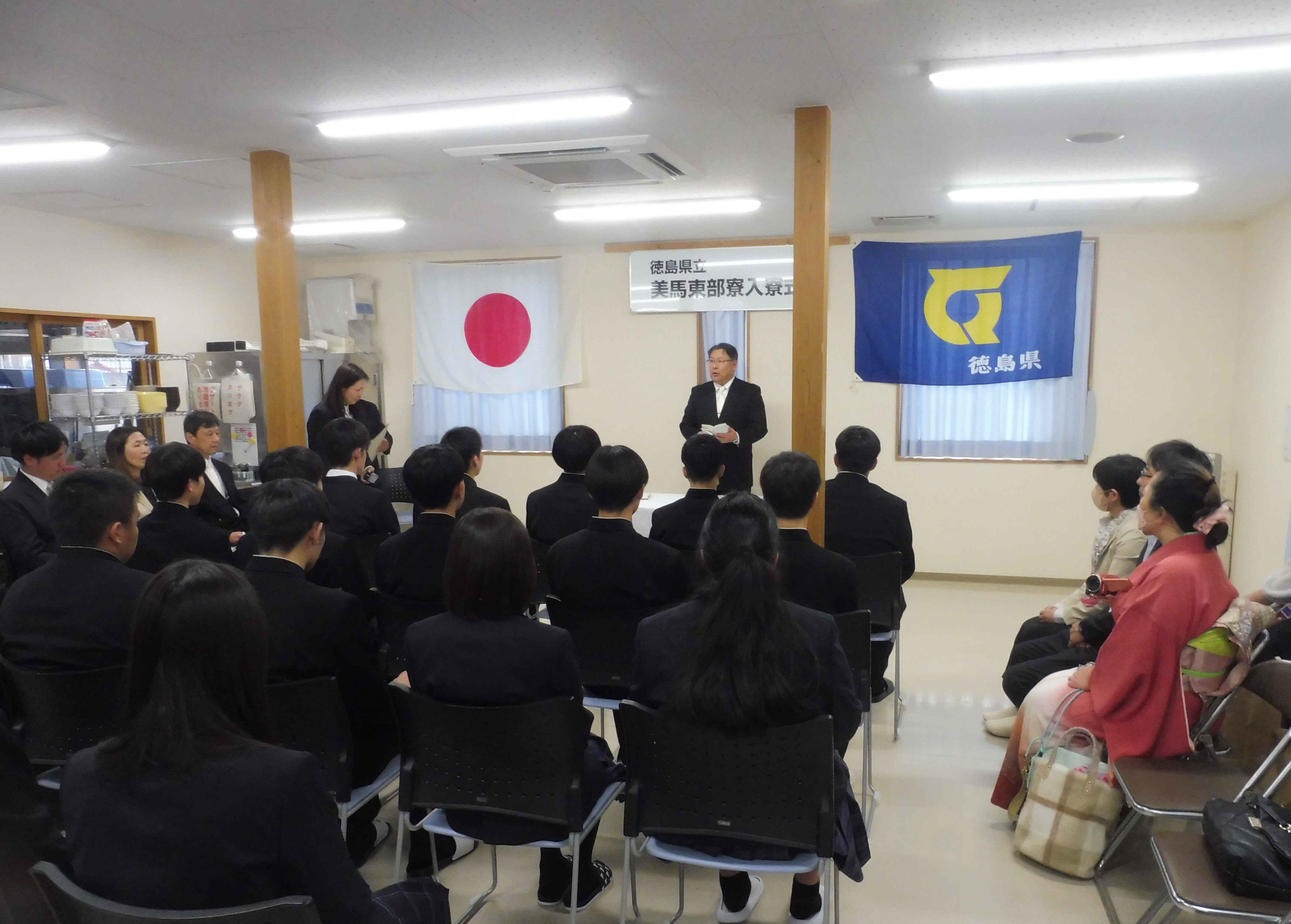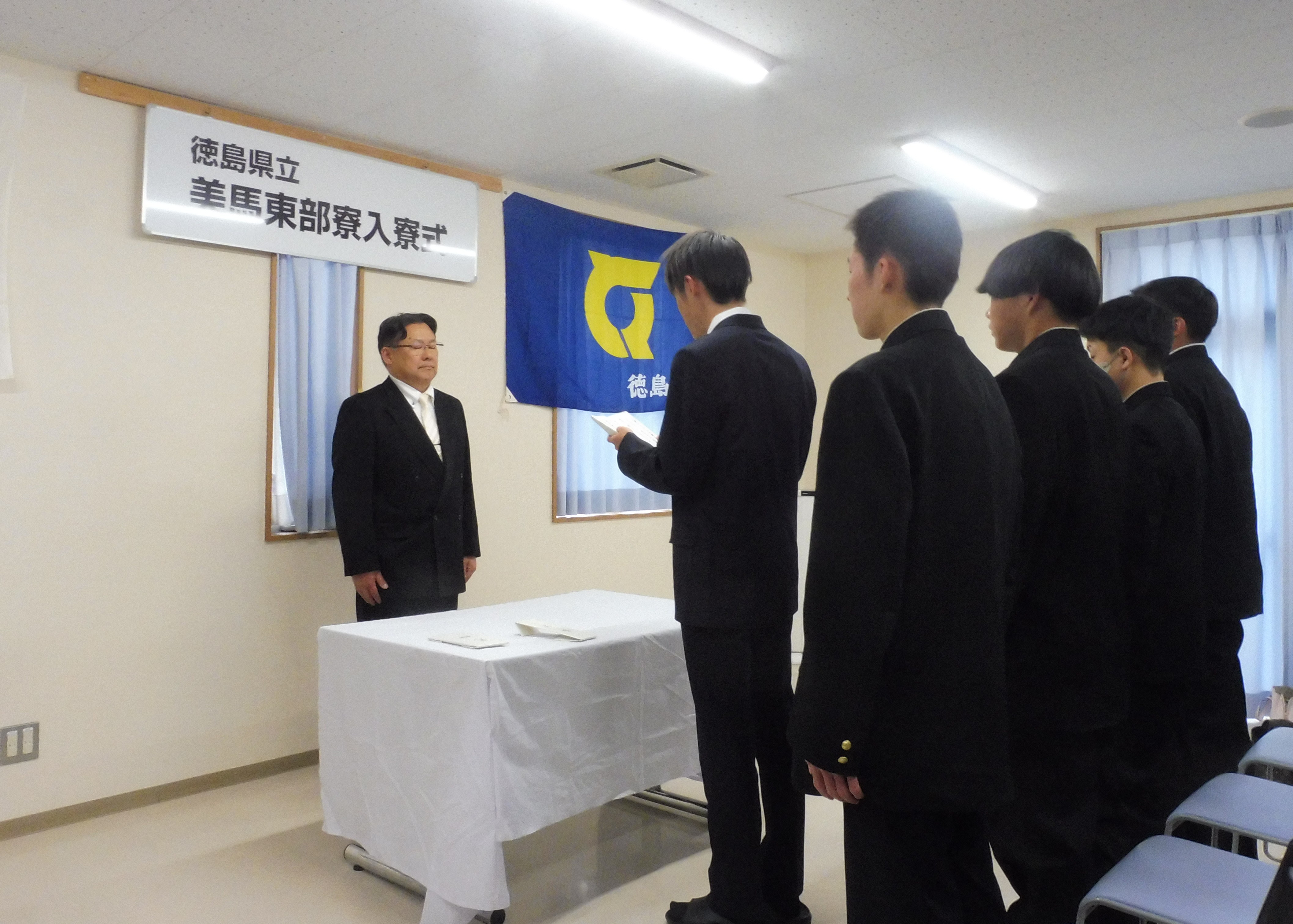 4月8日(火)17時より、令和7年度美馬東部寮の入寮式を行いました。河野校長の式辞の後、入寮生代表が「寮の規則を守り、寮生としての自覚を持ち、明るく楽しく、規律のある寮生活を送るように努力します。」と宣誓しました。