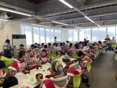 当日は、本校の特色である少人数授業で学ぶ政治・経済や英語の授業、9名のオリンピアンを讃えるオリンピック記念資料室から撮影が始まり、午後には数学の授業など幅広く取材が行われました。先生や生徒へのインタビュー、生徒の皆さんによる元気いっぱいのタイトルコール撮影、少林寺拳法部・レスリング部の活動風景も収録されました。